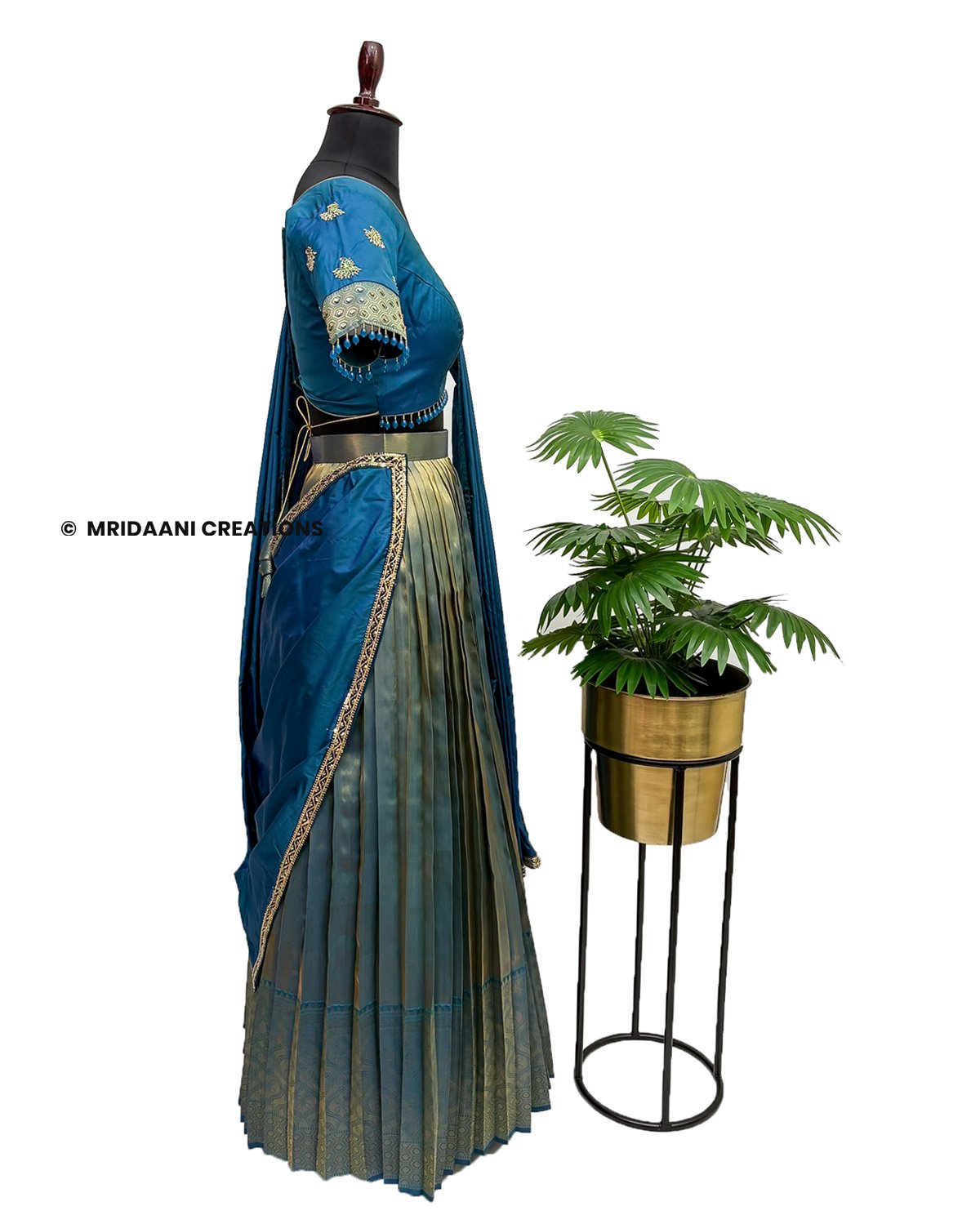 Mridaani designs this mesmerizing ethnic lehenga crafted in Kancheepuram Tissue Silk Material with delicate hand embroidery in various patterns, teaming it with matching blouse & a Dupatta.