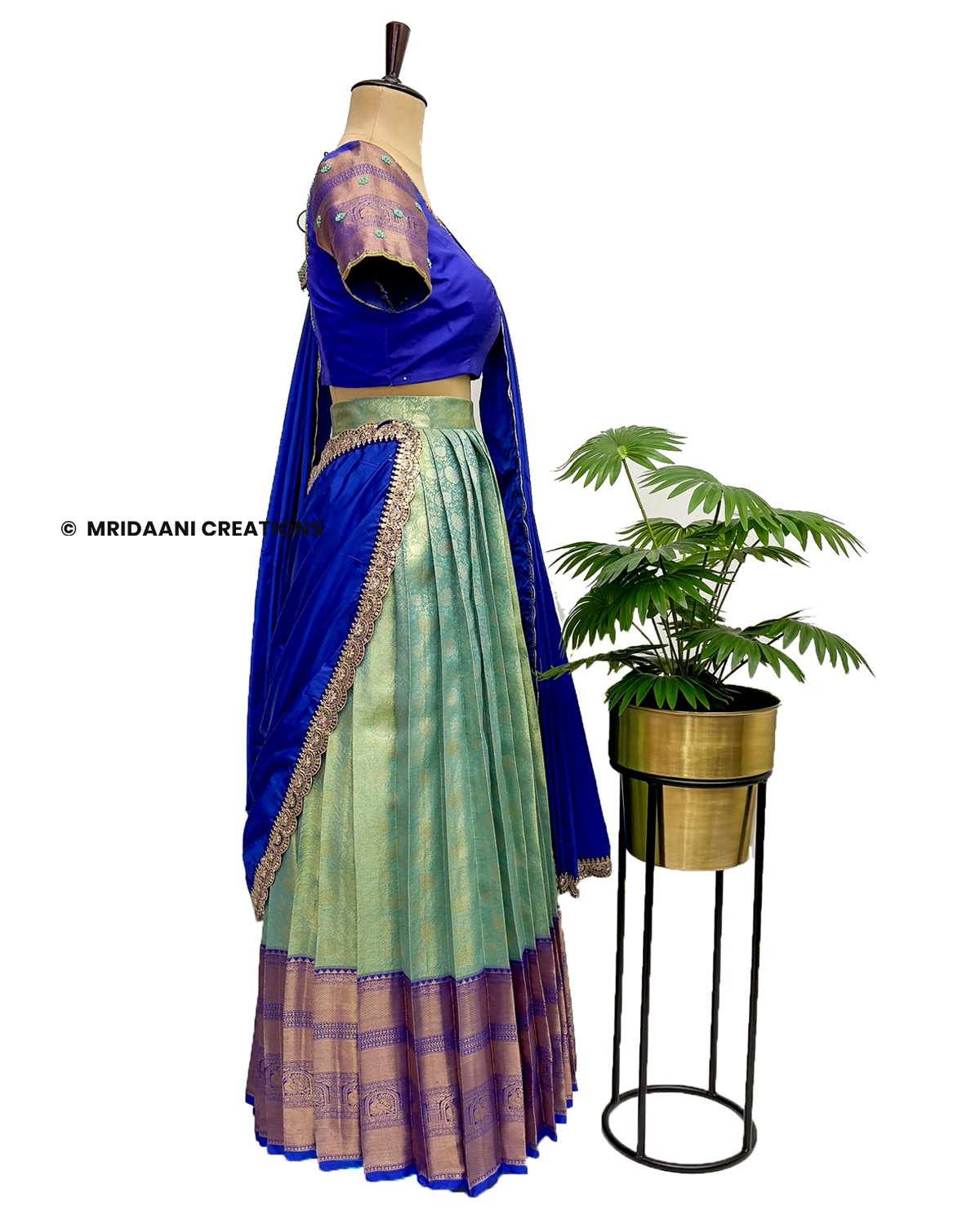 Mridaani designs this mesmerizing ethnic lehenga crafted in Kancheepuram Tissue Silk Material with delicate hand embroidery in various patterns, teaming it with matching blouse & a Dupatta.