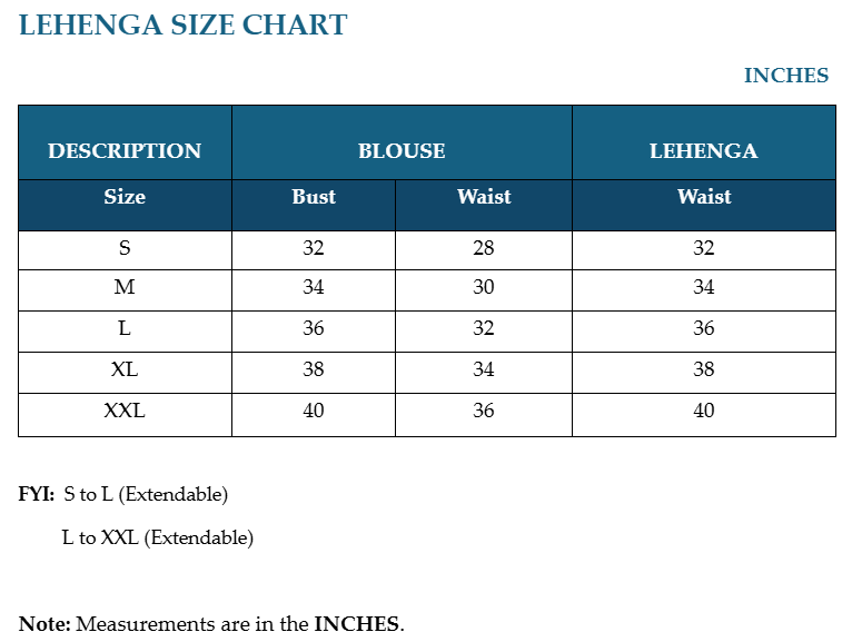 Product Contains: 1 lehenga+1 Blouse+1 Silk Dupatta (2.5Mtrs)