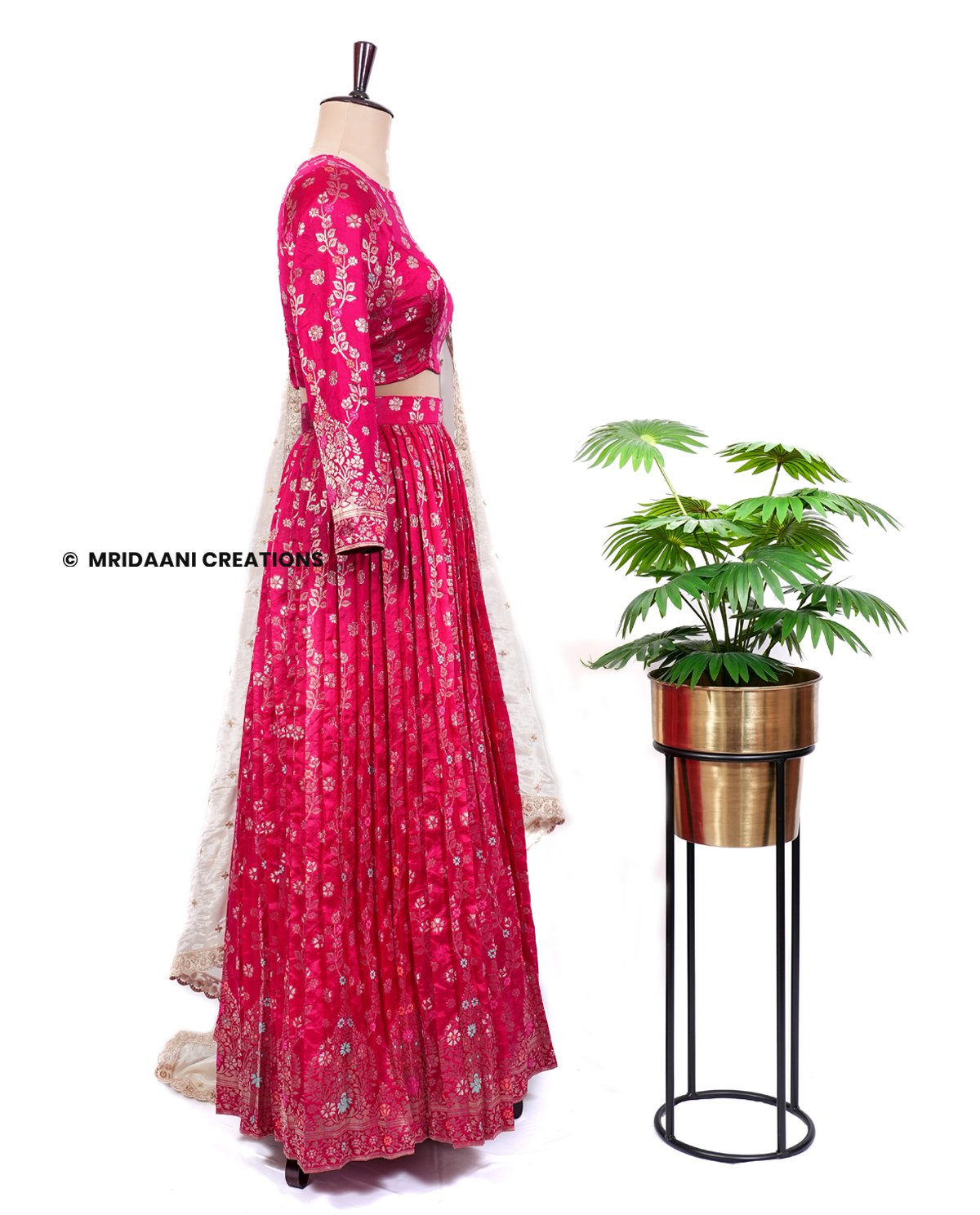 Mridaani designs this mesmerizing ethnic lehenga crafted in Dola Silk Material teaming it with matching blouse & a Dupatta.